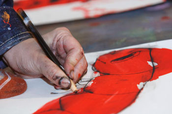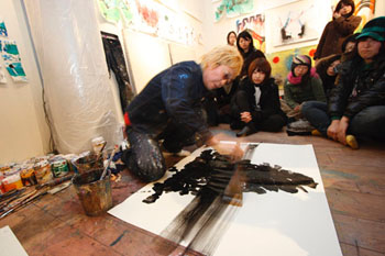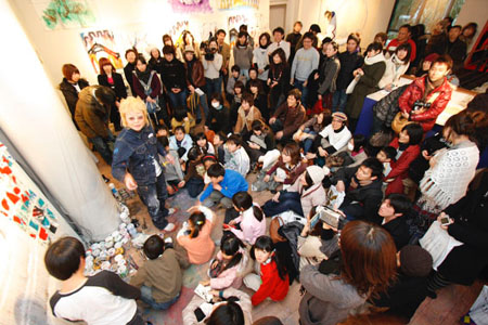 ぼくの願いに彼女が応えてくれる。「個展」ではない。展示作品のすべてをぼくたちの目の前で描いてくれるのだ。
